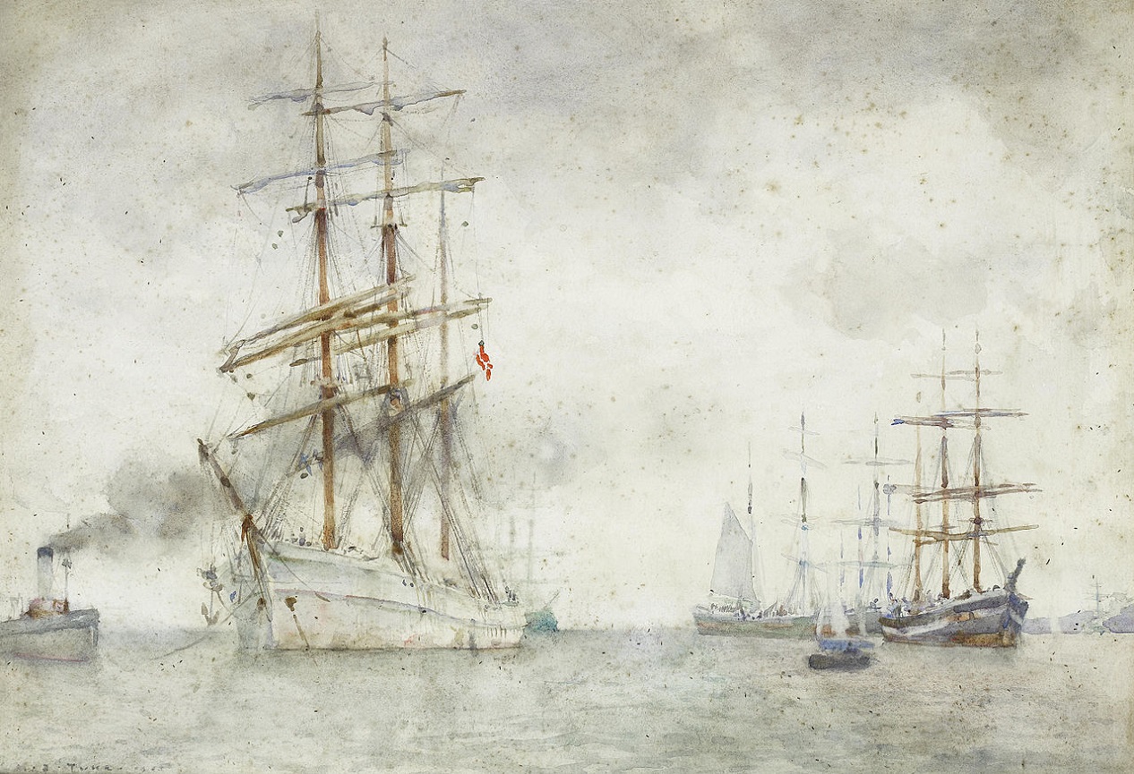 Henry Scott Tuke (1858-1929): A Norwegian windjammer in Falmouth Roads (c.1905). Private collection