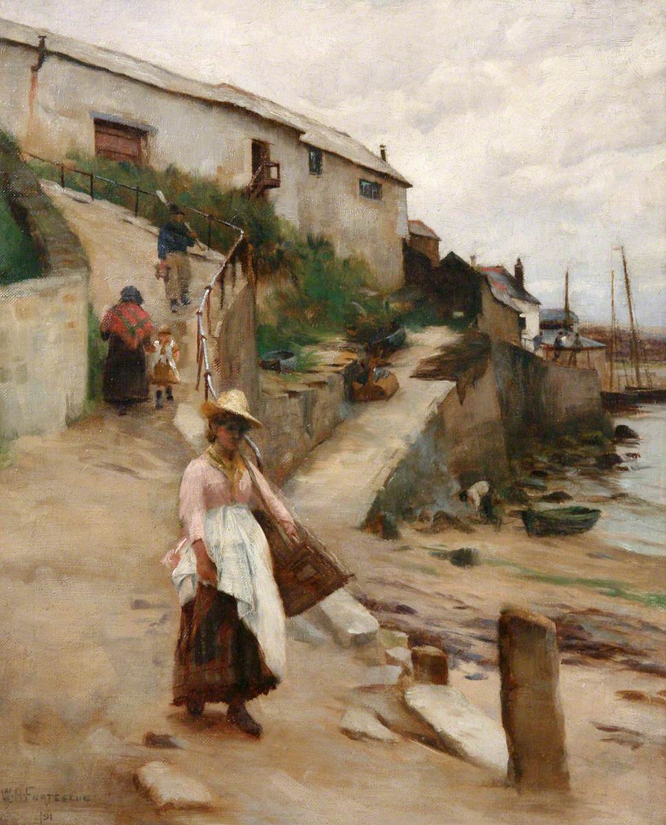 William Banks Fortescue (1850-1924): Old Newlyn Harbour (1891). Penlee House, Penzance