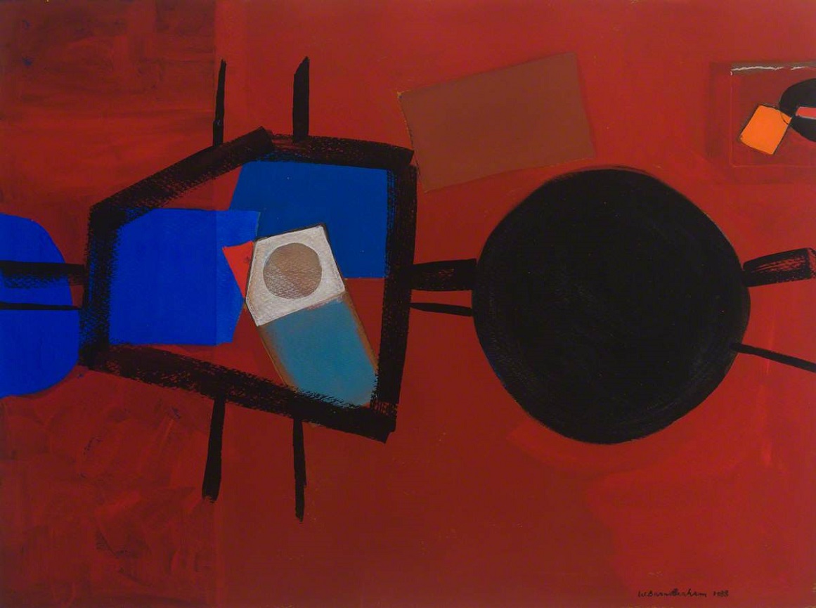 Wilhelmina Barns-Graham (1912-2004): Connected Forms No. 3 (On Red, Blue and Black) (1988). Wilhelmina Barns-Graham Trust