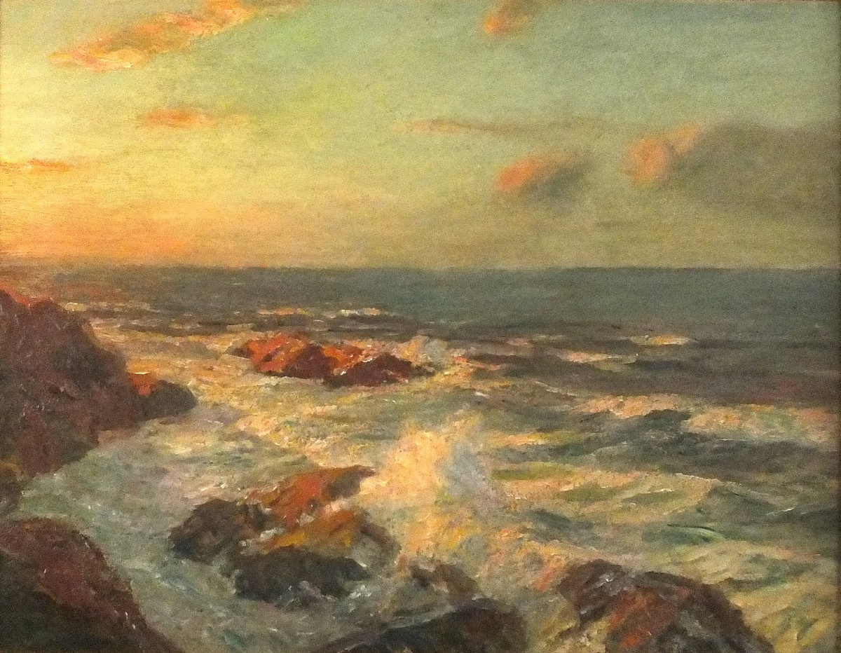 Julius Olsson (1868-1942): Evening light and Gentle Swell on a Rocky Foreshore