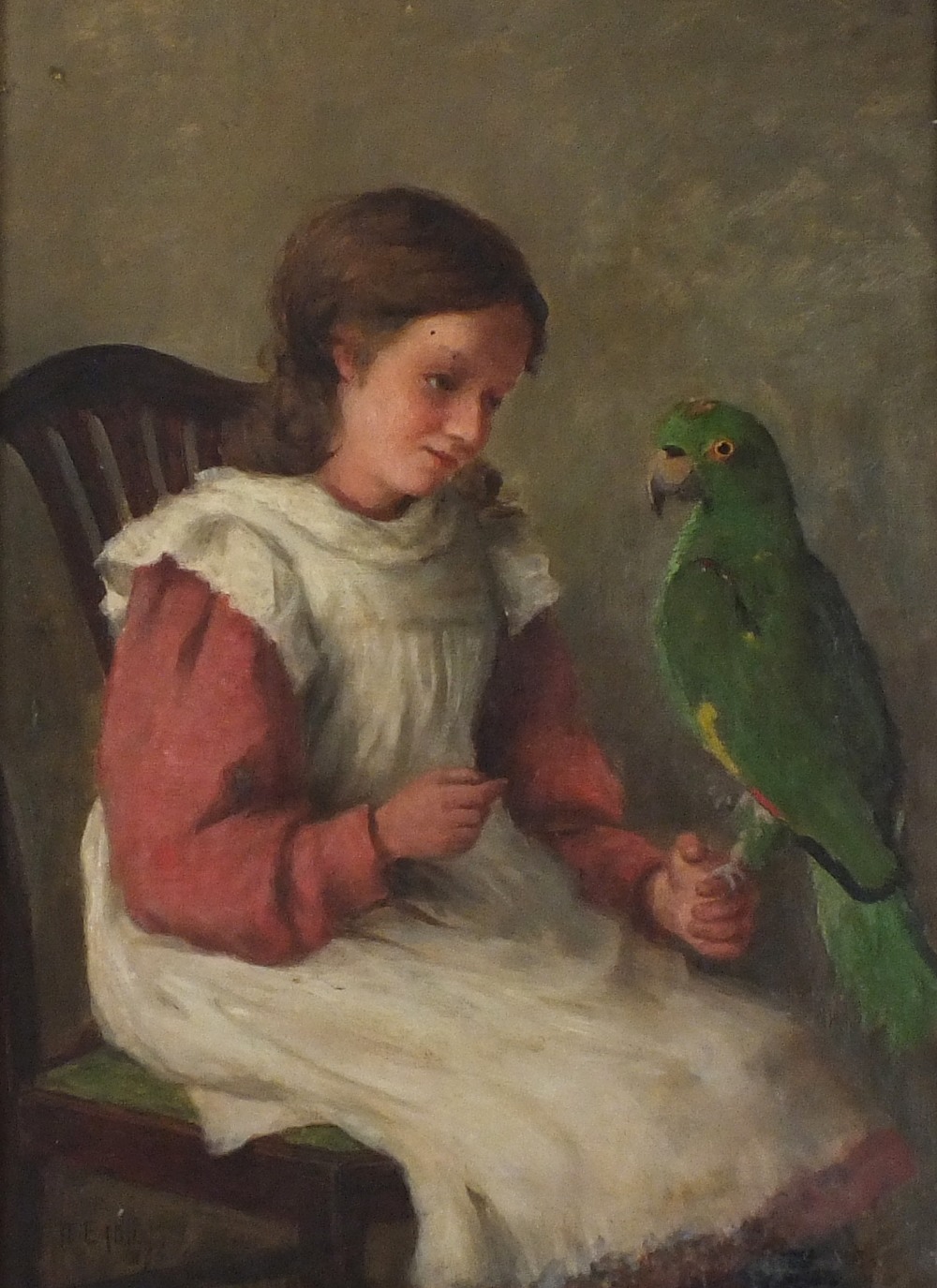 William Eadie (1846-1926): Girl with a Green Parrot (1896)