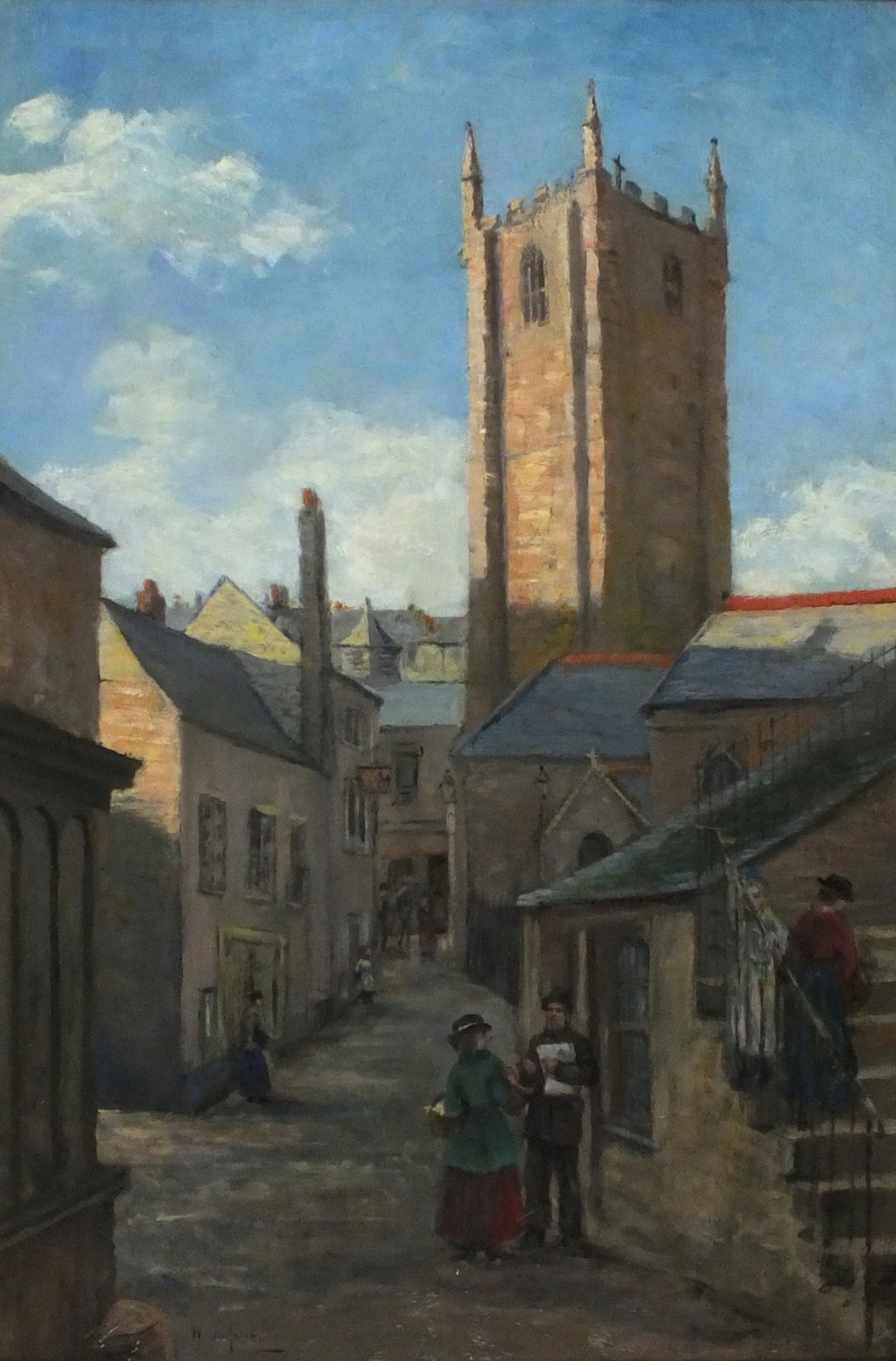 William Eadie (1846-1926): Figures in St Andrew's Street before St Ia Church, St Ives