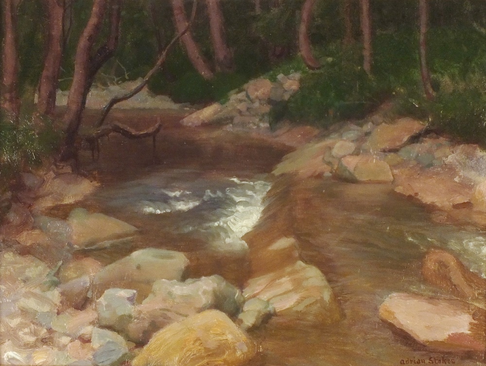 Adrian Stokes (1854-1935): A Weir on a Woodland Stream (Undated)