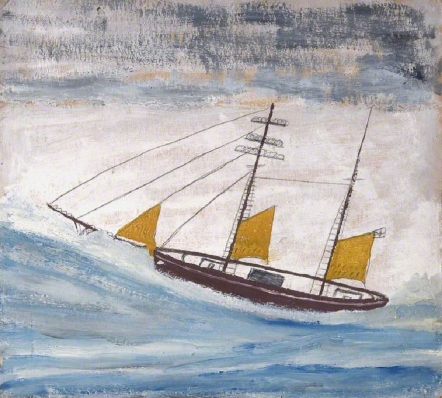 Alfred Wallis (1855-1942): Fishing Boat with Two Masts and Yellow Sails (1920s). Dorset County Museum, Dorchester
