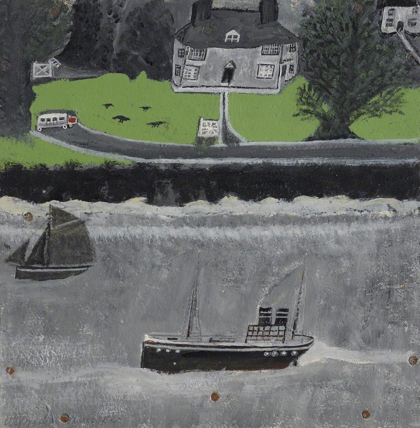 Alfred Wallis (1855-1942): Two Boats Moving Past a Big House (c.1932-37). Kettle's Yard, Cambridge