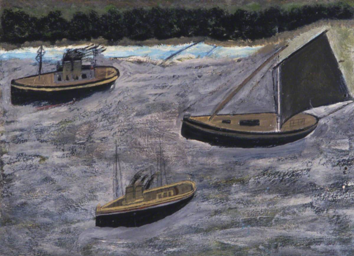 Alfred Wallis (1855-1942): Three Boats off the Shore (Date unknown). Aberdeen Art Gallery and Museums