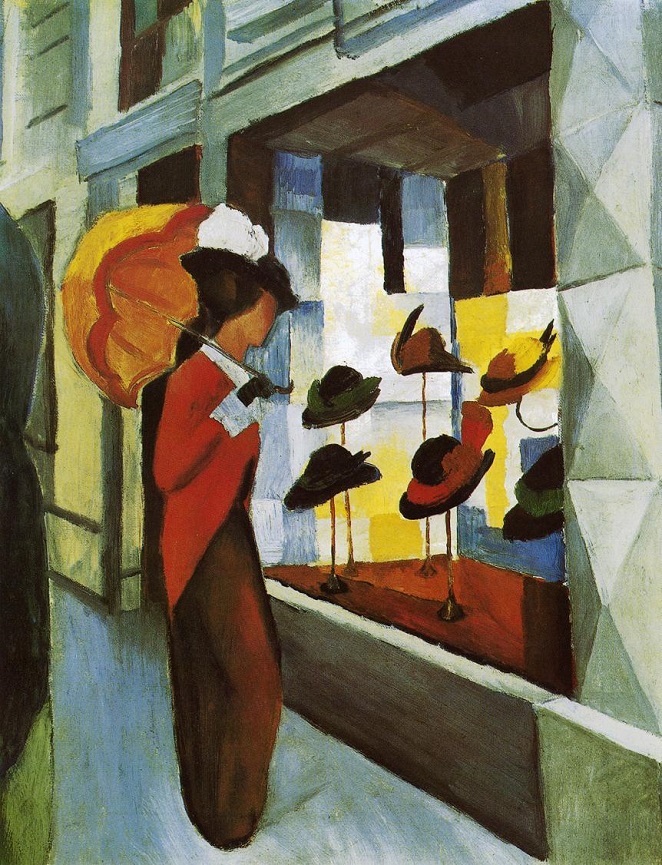 August Macke (1887-1914): Woman with Umbrella in fron of Hat Shop (1914). Museum Folkwang, Essen