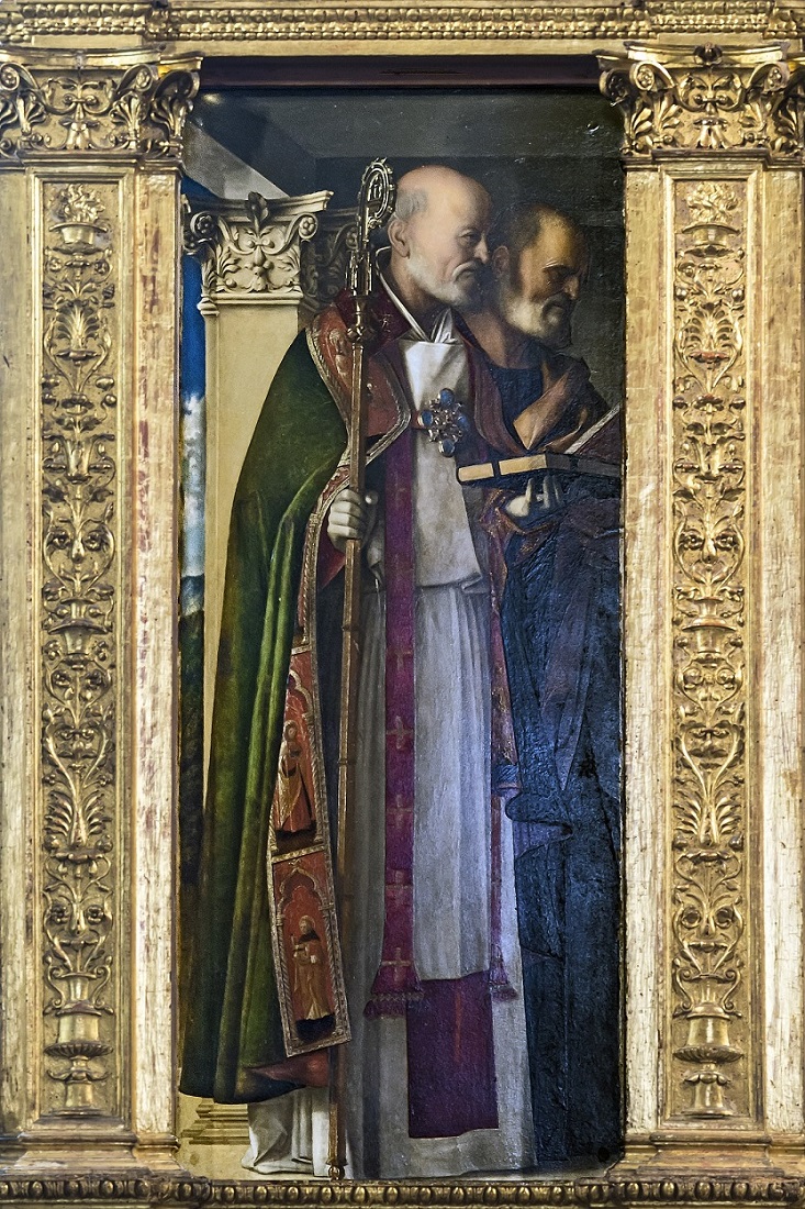 Giovanni Bellini (c.1430-1516): St Peter and St Nichols of Bari (Frari Triptych 1488). Basilica di Santa Maria Gloriosa dei Frari, Venice