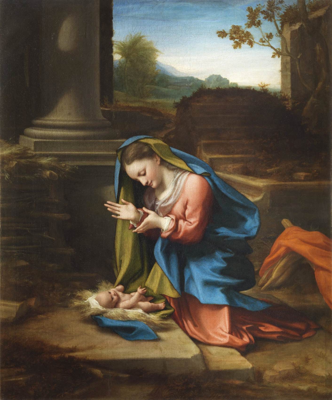 Correggio (1489-1534): The Adoration of the Child (1518-20). Gallerie degli Uffizi, Florence