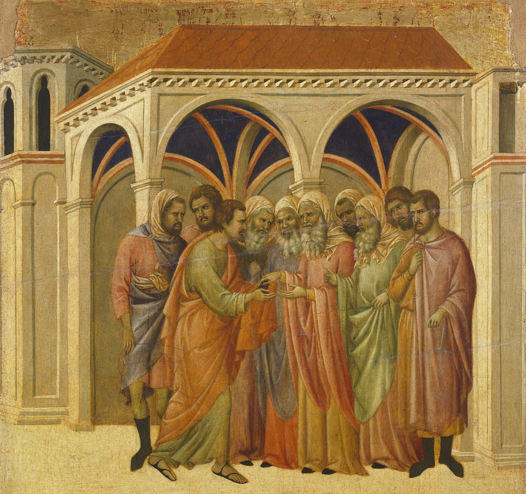 Duccio di Boninsegna (c. 1255–1260–c. 1318–1319): The Pact of Judas (1308-11). Museo dell'Opera Metropolitana del Duomo, Siena