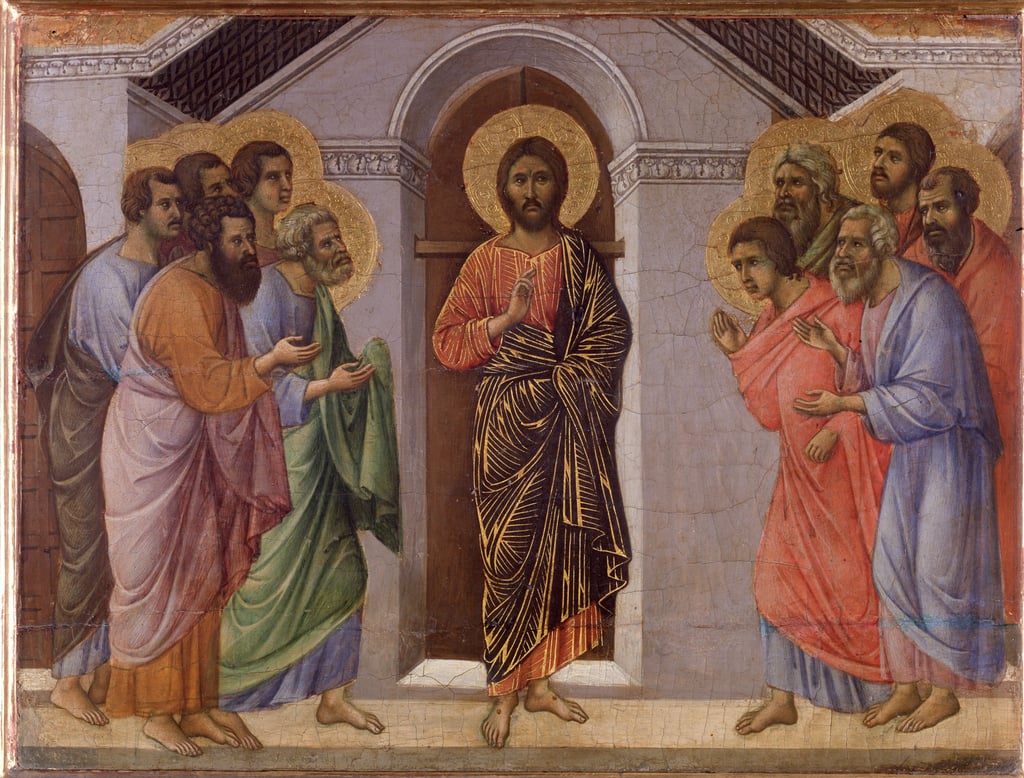 Duccio di Boninsegna (c. 1255–1260–c. 1318–1319): The Resurrected Jesus Appears to the Apostles (1308-11). Museo dell'Opera Metropolitana del Duomo, Siena