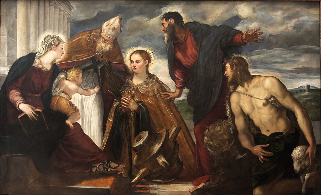 Tintoretto (1518-94): Virgin with Child with Saint Catherine, Augustin, Marc and John the Baptist (1545-46). Musée des Beaux Arts, Lyon
