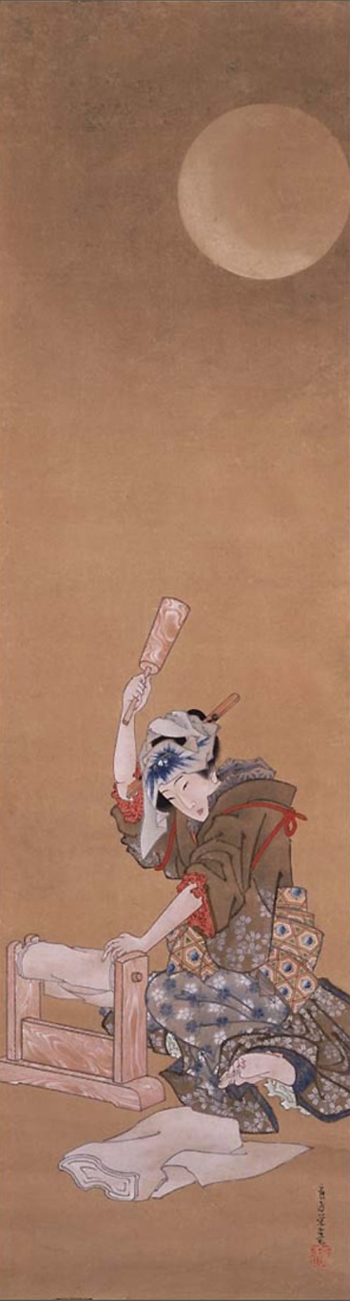 Katsushika Oi (c.1800-c.1866): Woman Fulling Cloth in the Moonlight