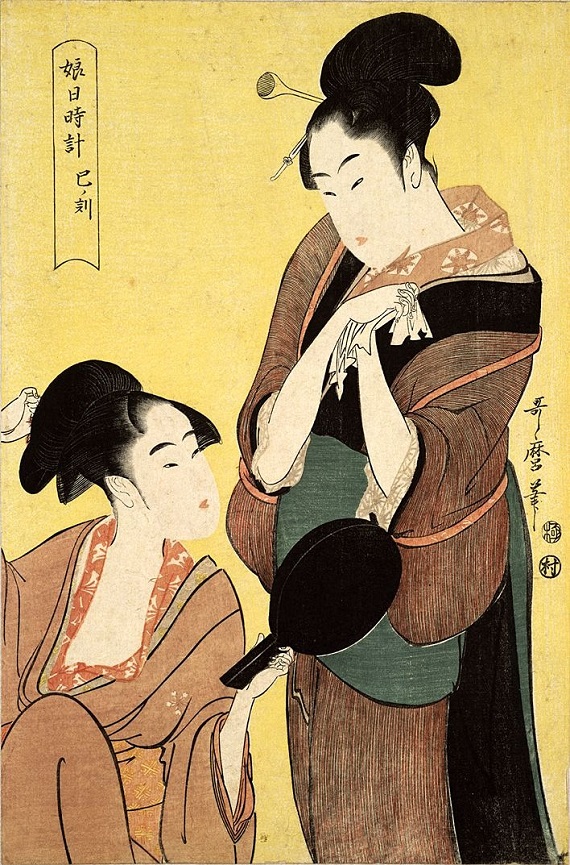 Kitagawa Utamaro (c.1753-1806): Women playing with the mirror (1797). Woodcut