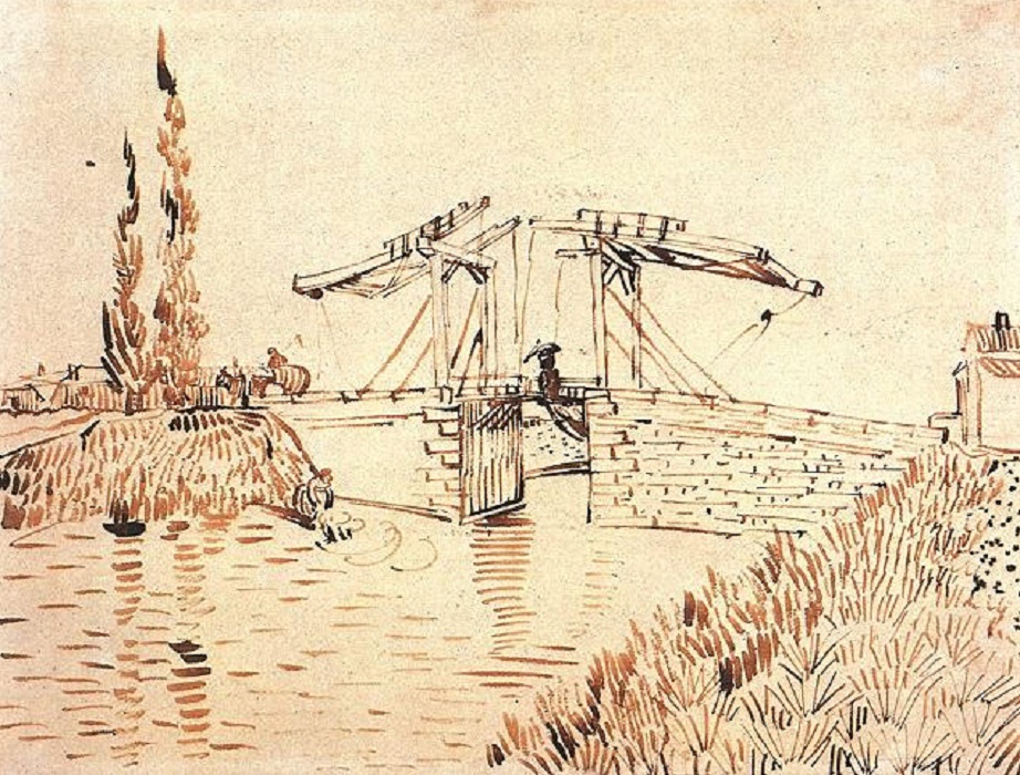Vincent van Gogh (1853-1890): The Langlois Bridge with a Lady with an Umbrella (1888). Los Angeles County Museum of Art
