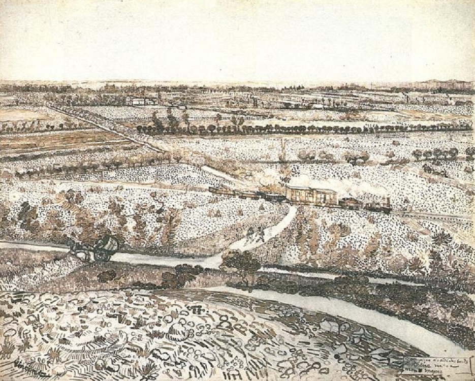 Vincent van Gogh (1853-1890): Landscape near Montmajour with Train (1888). British Museum, London