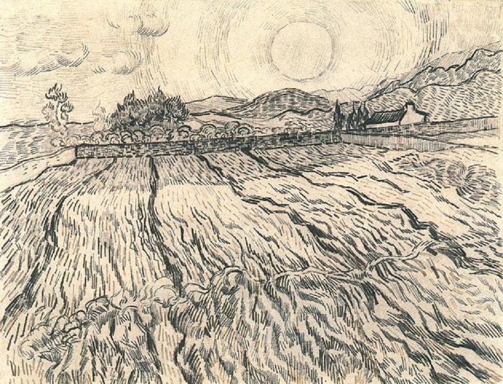 Vincent van Gogh (1853-1890): Enclosed Wheat Field with Rising Sun (1889). Staatliche Graphische Sammlung, Munich
