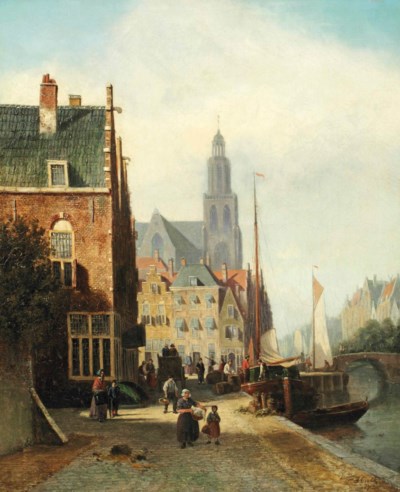 Johannes Frederik Hulk (1829-1911): Daily Activities on a Quay in a Dutch Town (1872)