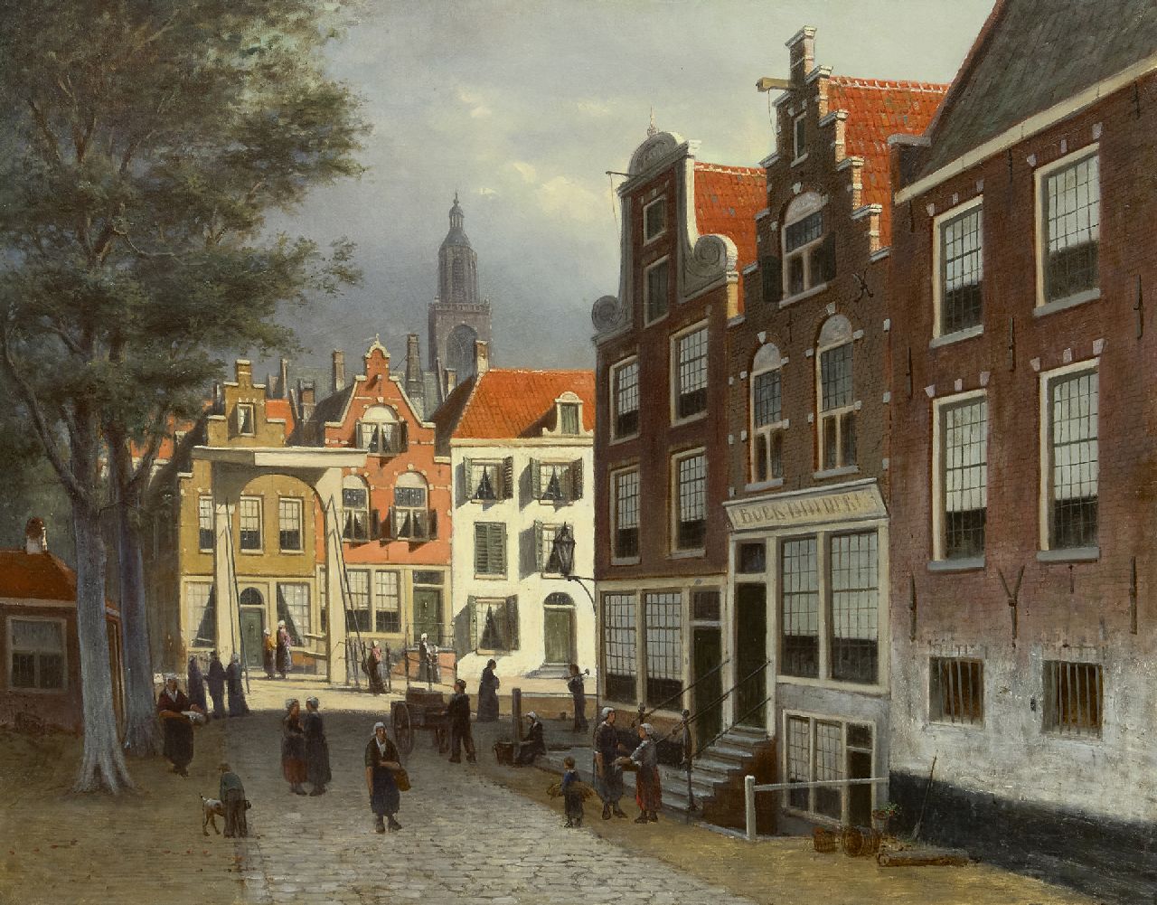Johannes Frederik Hulk (1829-1911): Dutch Town with Figures