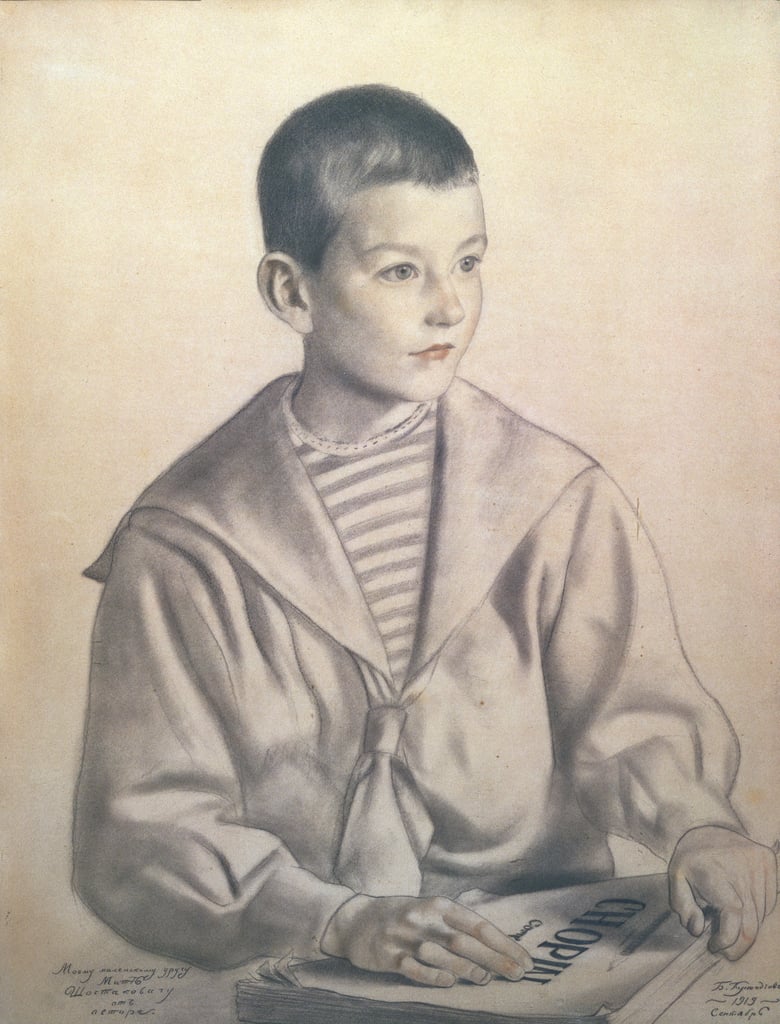 Boris Mikhaylovich Kustodiev (1878-1927): Dmitri Dmitryevich Shostavovich (1919). Shostakovich Memorial Museum, Saint Petersburgn