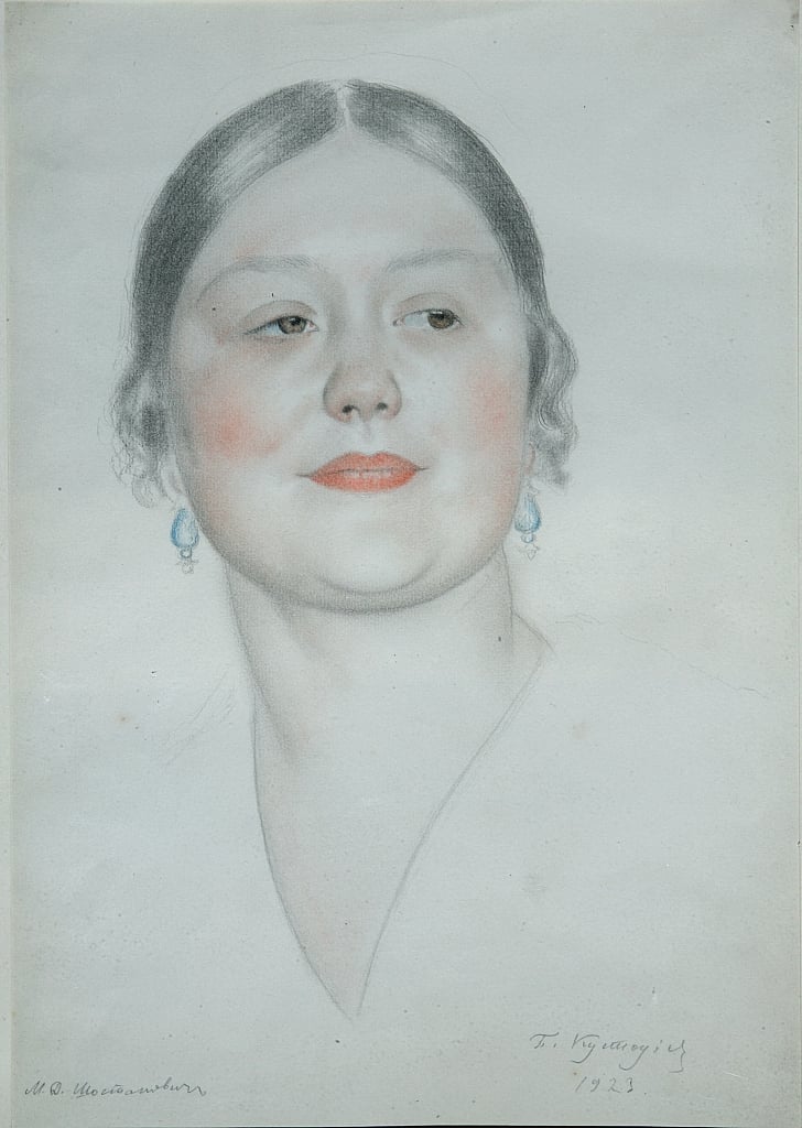 Boris Mikhaylovich Kustodiev (1878-1927): Maria Dmitryevna Shostakovichy (1923). Unknown location