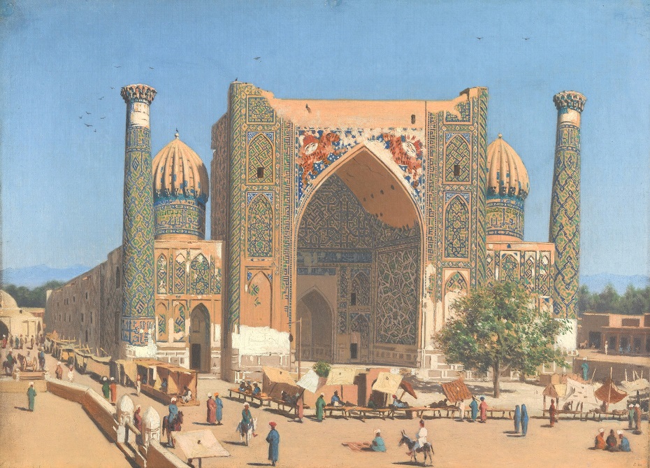 Vasily Vasilyevich Vereshchagin (1842–1904): Sher-Dor Madrasah in the Registan, Samarkand (undated). State Tretyakov Gallery, Moscow
